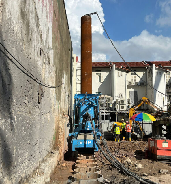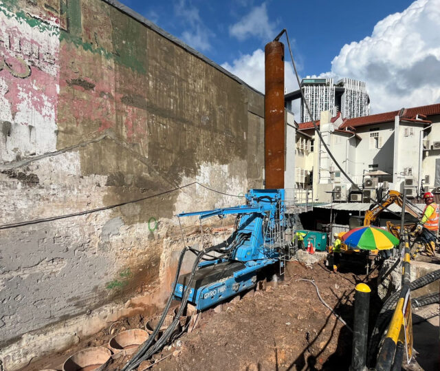 The Gyropress Method™—a method for rotary cutting press-in of tubular piles—of GIKEN LTD. is being adopted in Singapore in multiple cases. In the hotel construction business, the Singapore-based Guan Chuan Engineering Construction Pte Ltd, a member company of GTOSS™ ASIA*¹, has used it in construction. GIKEN Group company GIKEN SEKO CO., LTD. provided consulting support for Guan Chuan.