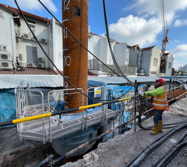 With its narrow land area, Singapore has many densely populated areas with concentrated facilities, leading to an increase in construction work taking place under severe constraints. There has also been a recent increase in construction projects on hard ground. The Gyropress Method™, which allows for vibration-free and noise-free construction, space-saving operation, and fast construction speed even on hard ground, was highly regarded by construction-related parties at a demonstration carried out with Guan Chuan, and starting with its first adoption*² in January for a research facility construction project, it is seeing increasing use. This time, being able to demonstrate both an innovative solution to overcoming constraints and its effectiveness, we can expect to see its further adoption in urban redevelopment where work must be done in limited spaces, or ways to address the deterioration of facilities that require special consideration, such as medical, research, and educational institutions.