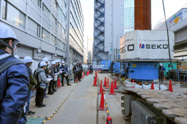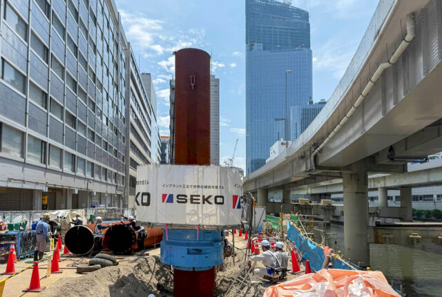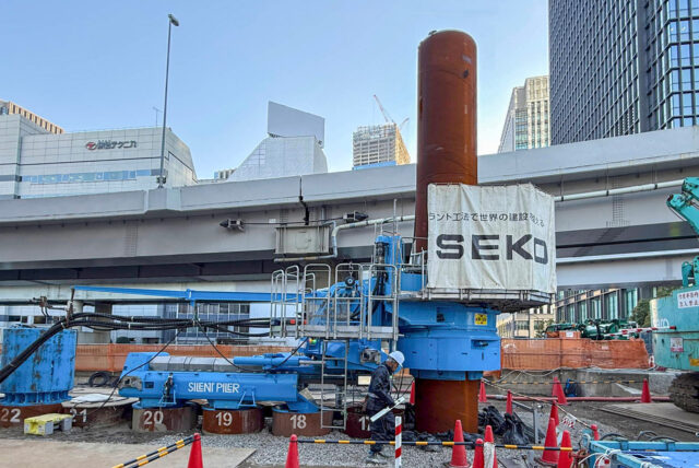 The Gyropress Method™ tubular pile rotary cutting press-in method of GIKEN LTD. has been adopted for the relocation of the Shutoko underground at Nihonbashi in Tokyo. This project has a total cost of 320 billion yen and will be creating a new underground route by 2035, followed by the complete removal of the aging viaducts by 2040, transforming Nihonbashi into a new town. In the Shutoko Renewal Project to revitalise the Metropolitan Expressway, this is the next major step after the renewal of Daishi Expressway Bridge.*