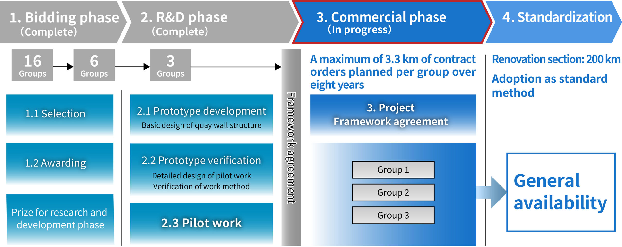 During this phase, renovation work covering a total of 3.3 km is planned through 2032, and the group responsible for development will be awarded the contract for the work using the innovative technology developed for the project. G-Kracht B.V., having demonstrated the superiority of the press-in technology and successfully completed the pilot work, has secured contract orders for a total of 1.3 km through 2028. Following this, contracts will be renewed based on construction performance, with an additional 2 km section expected between 2028 and 2032.