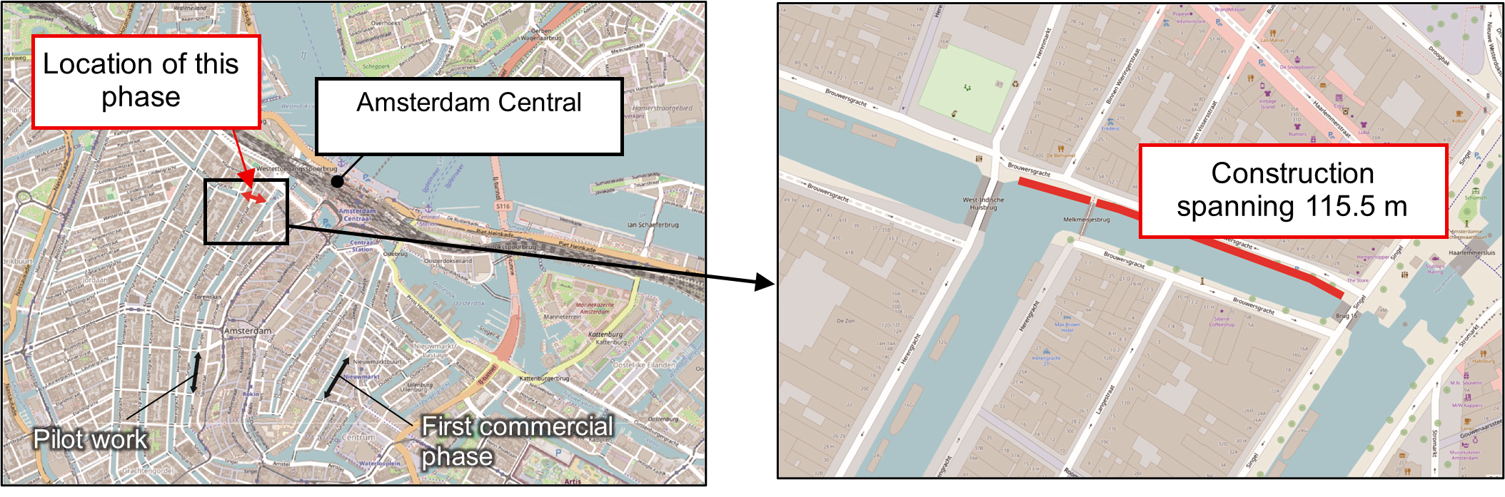 This construction work follows the success of the first project in the commercial phase*, in which press-in construction was carried out from May to September 2025. G-Kracht B.V. is scheduled to receive contract orders for a total of 3.3 km by 2032 under the commercial phase, with press-in construction scheduled to start in August 2026 for a section 115.5 m long. The site is along a beautiful canal lined by historic, cultural heritage buildings and a key tourist spot visited each year by more than a million visitors via sightseeing cruises. The technologies of GIKEN allow temporary work-free construction while limiting vibrations and noise, protecting the tourism industry by minimising impact on the surrounding environment and not obstructing waterway traffic during construction. Furthermore, similar to the first phase, fully electrified construction machines and such will be used to achieve zero CO2 emissions at the site.