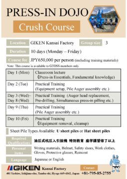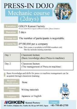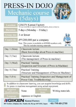 Press-in Dojo is part of the technical support offered under GTOSS™*. It is a program that uses standard training curricula to develop mainly domestic and overseas users as well as employees of the GIKEN Group, including those from overseas subsidiaries.