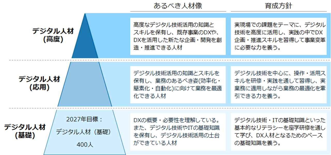 当社では「高収益企業体制の実現」と「開発型企業への特化」の2軸を目標にDX人材の育成に取り組みます。