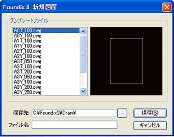 用紙や尺度などがあらかじめに設定されているテンプレートファイルをもとにして図面を新規作成できます。