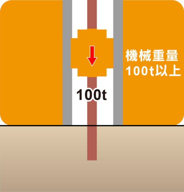 一般に、建設機械は機械自体の重量で機体を安定させるため大型化してしまいます。機械重量で機体を安定させる仕組みでは、仮に100t の力をかけると、100t 以上の機械重量がなければ機体は浮いてしまいます。当然、機械は巨大化し、実用性は薄れます。